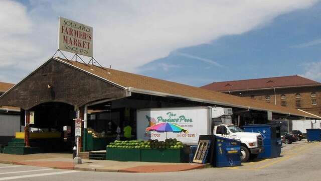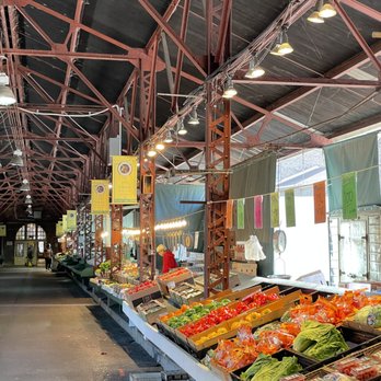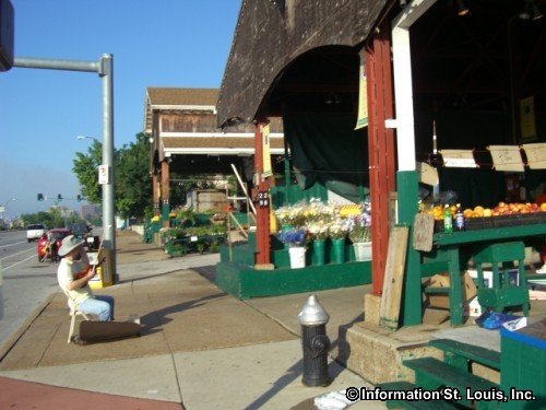 The mini donut man is making his odd creations and the flavored nut guy is patiently filling his cone-shaped baggies across the way. Soulard is shaped like a giant letter H. The vertical parts represent the 4 wings which have both walled and simply roofed sections. The horizontal of the H represents the center core, if you will.